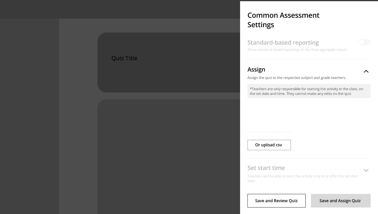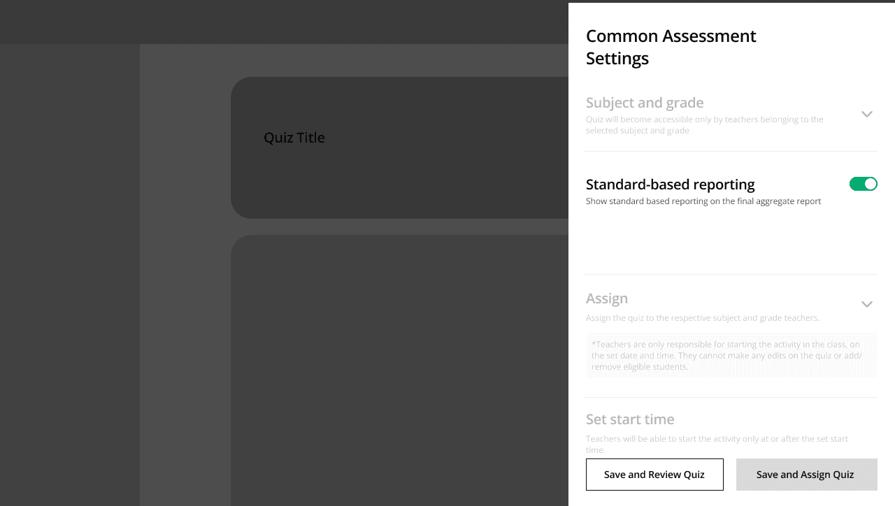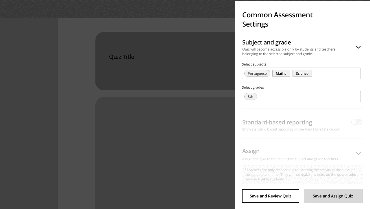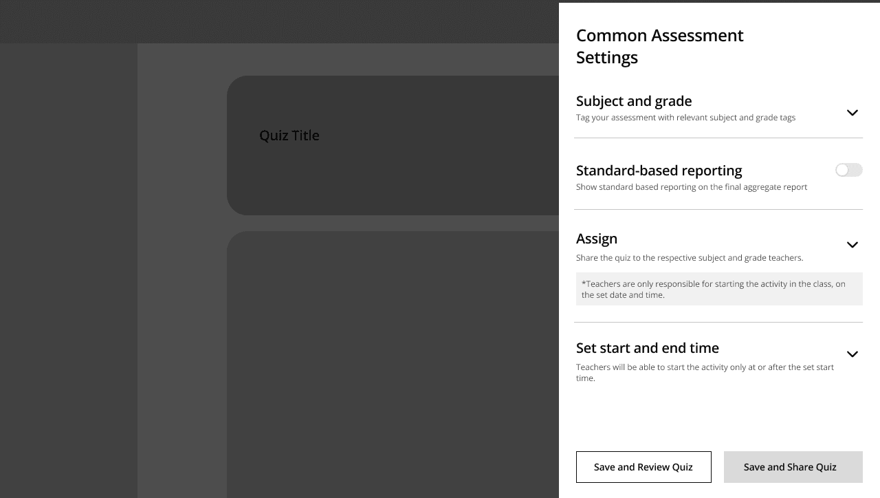 Problem to solve: How do we enable distribution of the common assessment created on Quizizz?