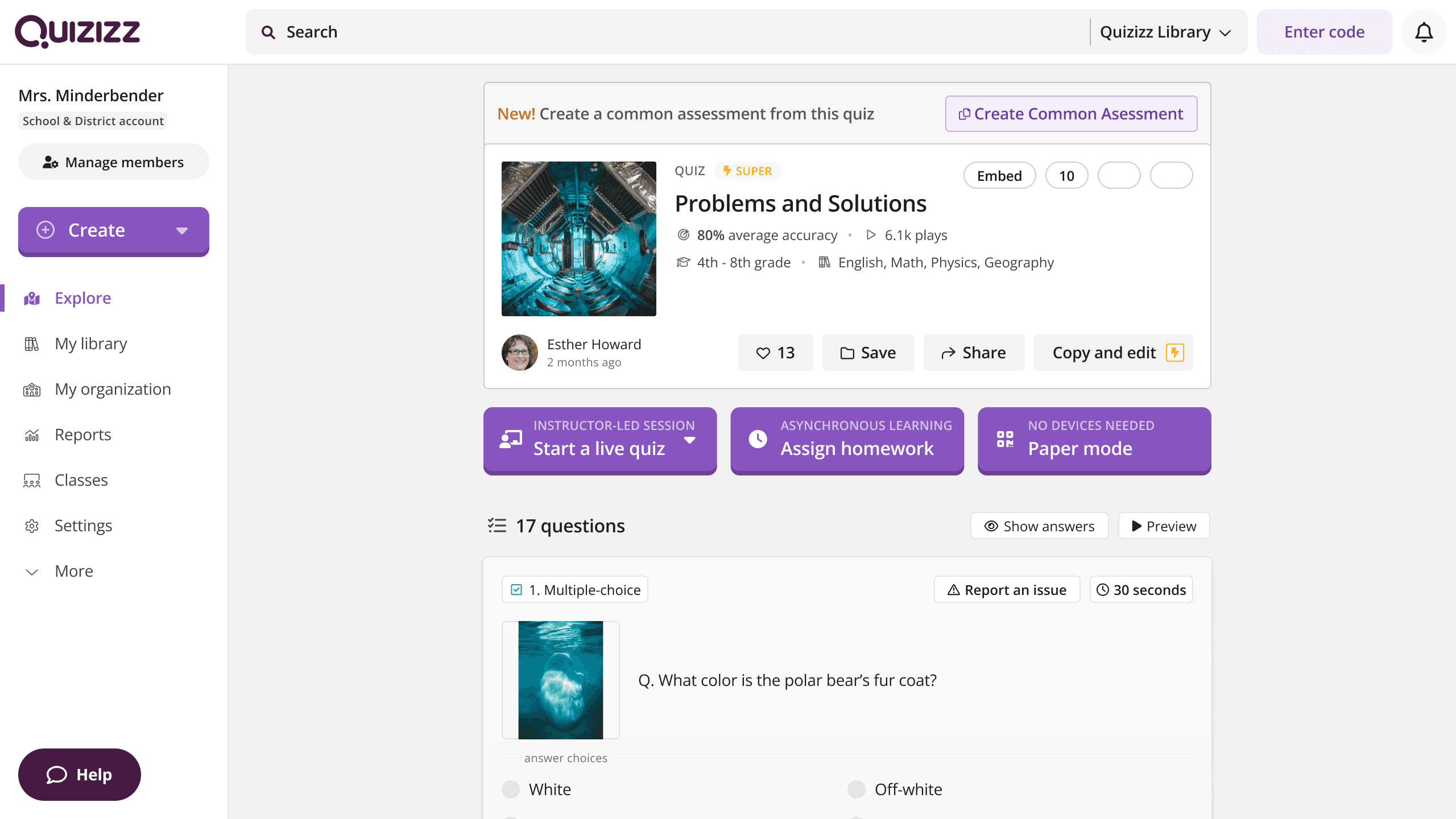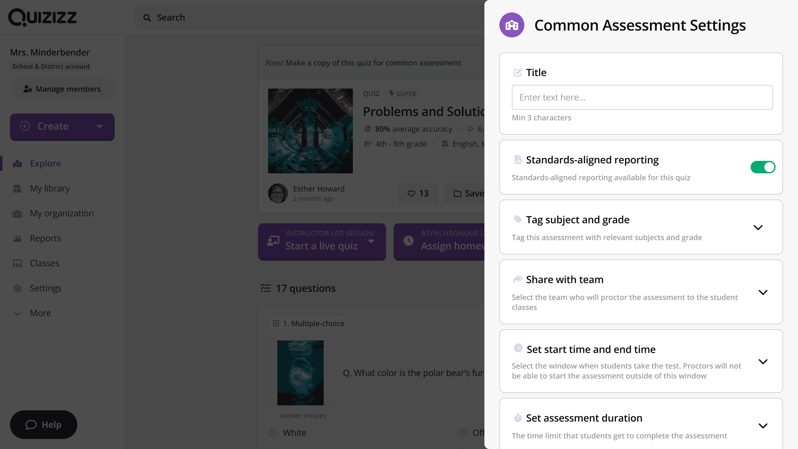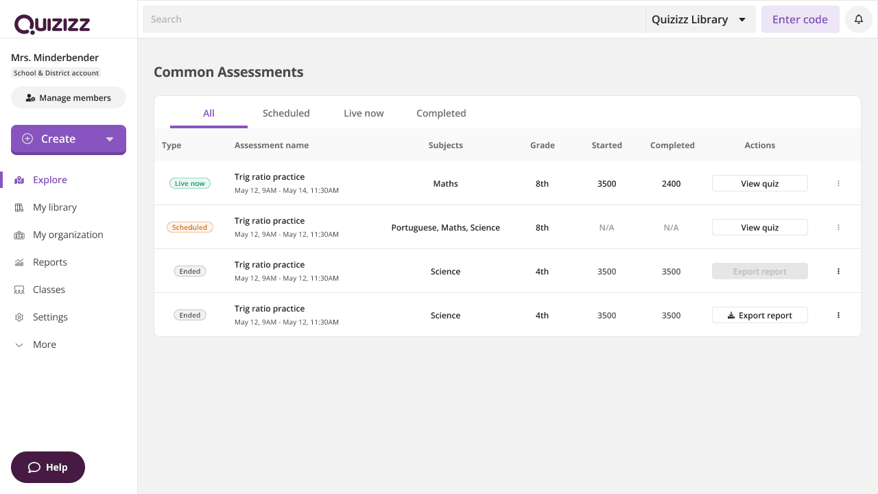 Problem to solve: How do we enable distribution of the common assessment created on Quizizz?
