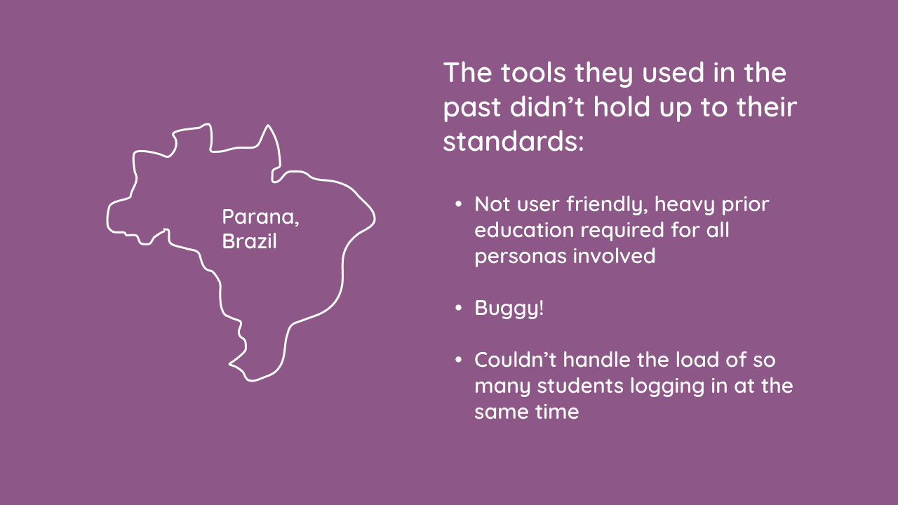 Insight: The previous tools tested by Parana govt were not user friendly, required heavy education prior to the assessment. Not ideal because there can be changes in the proctor list up until the last day before the assessment.