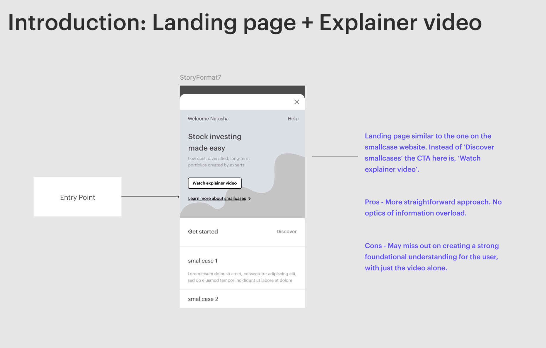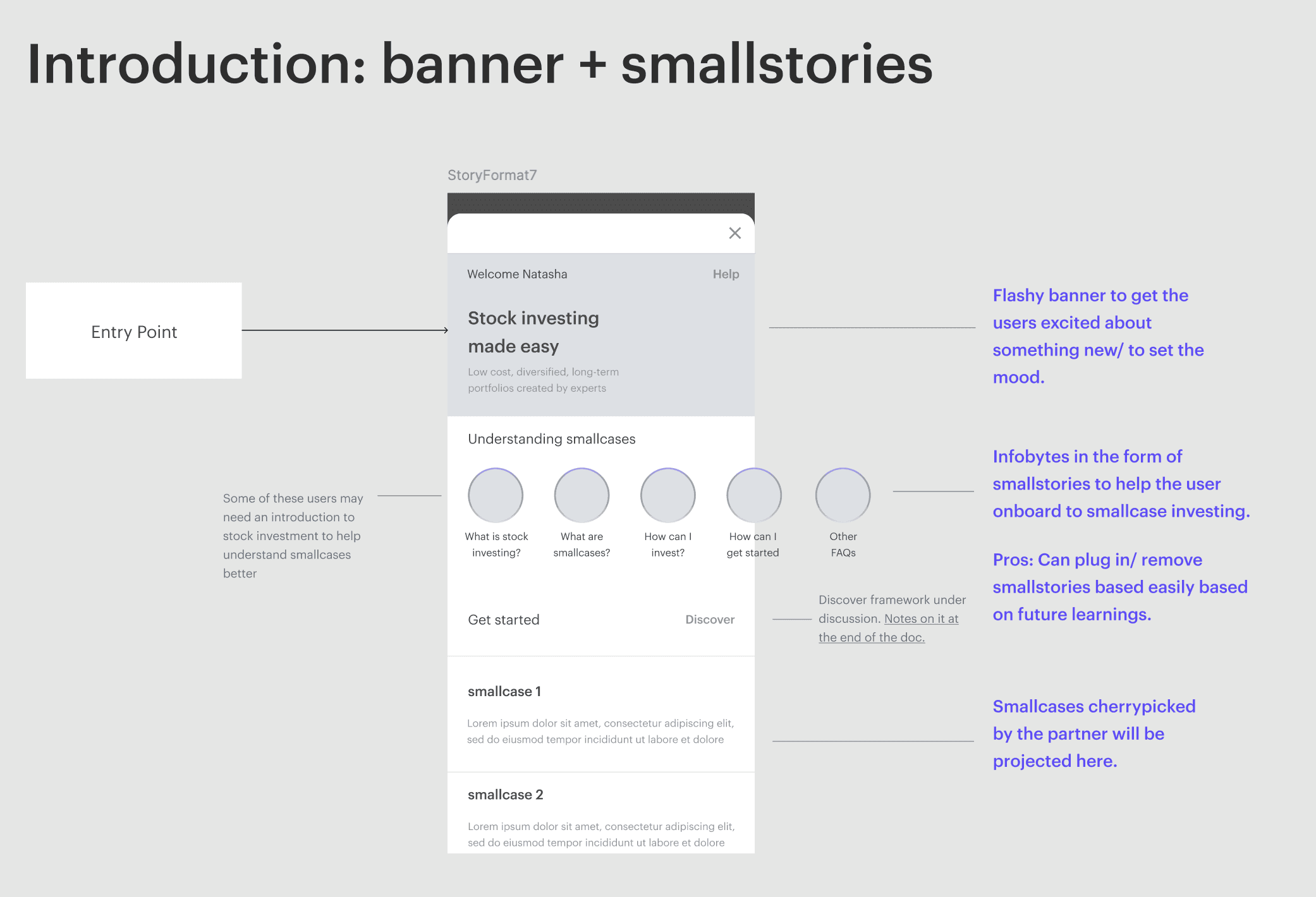 To create designs only the landing and discover screens for now. The following existing flows from the smallcase app will be plugged in with minor adjustments: