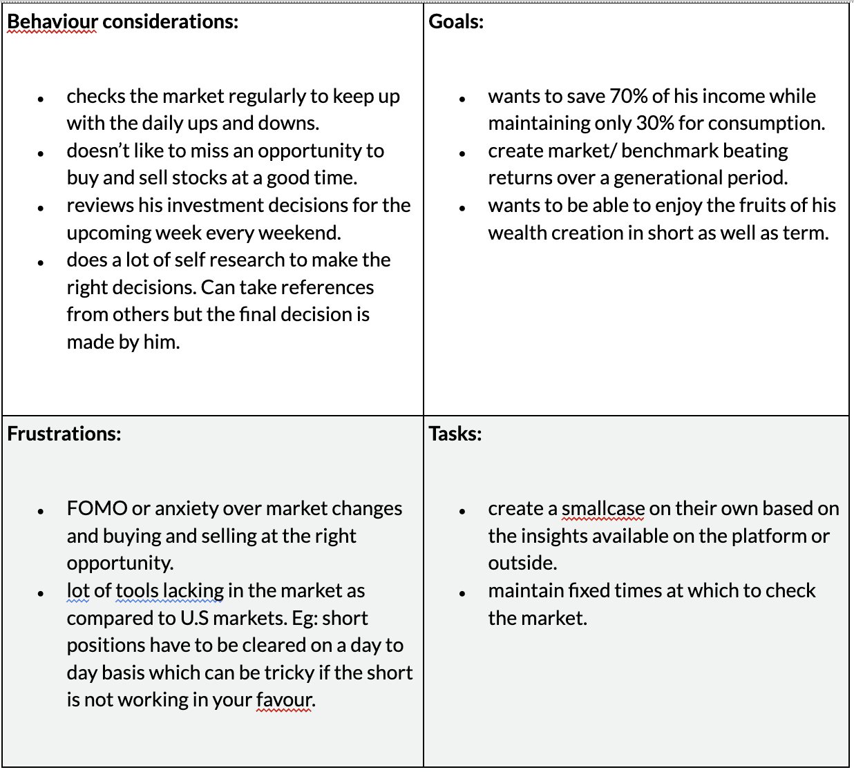 Nihal is a 28 year old who runs a family business. He is an active investor who makes independent decisions on his investment activity. He is research-oriented, organised and ambitious in terms of wealth creation.